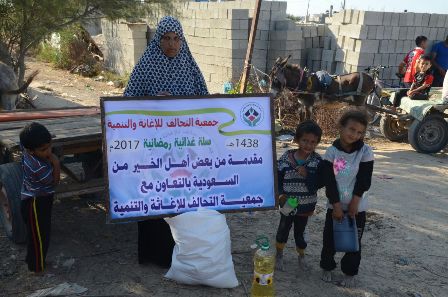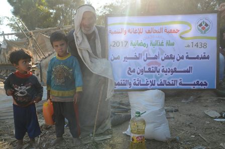 واصلت جمعية التحالف للإغاثة والتنمية بتقديم المساعدات الغذائية لليوم الخامس على التوالي “من شهر رمضان” مقدمة من أهالي الخير في المملكة العربية السعودية قدمت خلالها العديد من الطرود الغذائية اللازمة لشهر رمضان المبارك حيث تم توزيعها للأسر المحتاجة والفقيرة.